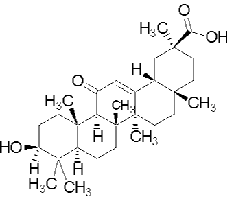 產品介紹 18 β-Glycyrrhetinic Acid is an aglycone of the triterpenoid Glyccyrrhizic acid, which is found in liquorice. inhibits the PGDH (15-hydroxyprostaglandin dehydrogenase) leading to increased prostaglandin concentration in the digestive system. Also investigated for potential antibiotic activities.