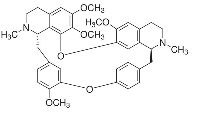 別名 粉防己堿 ;漢防己堿,漢防己甲素;;(1β)-6,6′,7,12-Tetramethoxy-2,2′-dimethylberbaman ,Tetrandrine