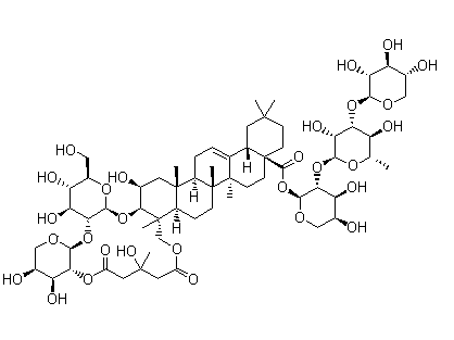 產(chǎn)品介紹 Tubeimoside I is a triterpenoid saponin isolated from tubers of bolbostemma paniculatum. Used as anti-tumor agent, induces cell cycle arrest and apoptosis.