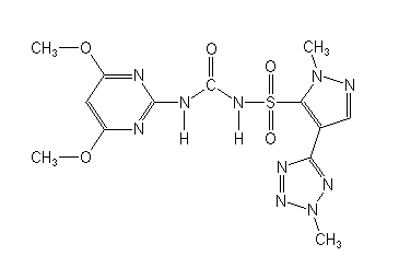 別名 1-((4,6-二甲氧基嘧啶-2-基)-3-(1-甲基-4-(2-甲基-2H-四唑-5-基)吡唑)-5-基磺酰基)脲;N-{[(4,6-二甲氧基-2-嘧啶基)氨基]羰基}-1-甲基-4-(2-甲基-H-四唑-5-基)-1H-吡唑-5-磺酰胺;N-(((4,6-Dimethoxy-2-pyrimidinyl)amino)carbonyl)-1-methyl-4-(2-methyl-2H-tetrazol-5-yl)-1H-pyrazole-5-sulfonamide 3-(4,6-Dimethoxypyrimidin-2-yl)-1-[2-methyl-4-(2-methyltetrazol-5-yl)pyrazol-3-yl]sulfonyl-urea
