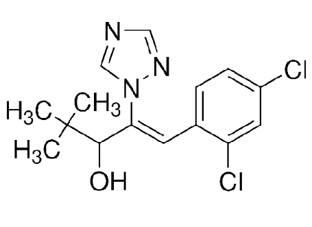 別名 烯唑醇 ;特譜唑,(E)-1-(2,4-二氯苯基)-4,4-二甲基-2-(1,2,4-三唑-1-基)-1-戊烯-3-醇 ;α-tert-Butyl-β-(2,4-dichlorophenylmethylene)-1H-1,2,4-triazole-1-ethanol