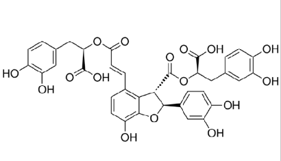 別名;Lithospermic acid B;(2S,3S)-4-[(1E)-3-[(1R)-1-Carboxy-2-(3,4-dihydroxyphenyl)ethoxy]-3-oxo-1-propen-1-yl]-2-(3,4-dihydroxyphenyl)-2,3-dihydro-7-hydroxy-3-benzofurancarboxylic acid 3-[(1R)-1-carboxy-2-(3,4-dihydroxyphenyl)ethyl] ester