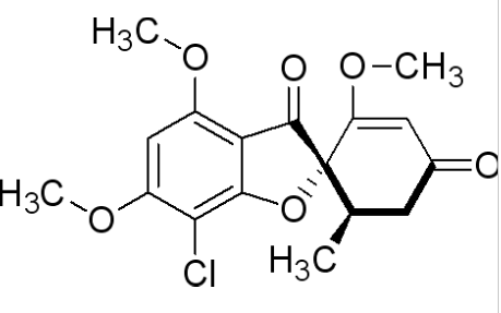 別名 灰黃霉素 ;6'-甲基-2',4,6-三甲氧基-7-氯螺[苯并呋喃-2(3H),1'-[2]環己烯]-3,4'-二酮;(2S)-trans-7-Chloro-2′,4,6-trimethoxy-6′-methylspiro(benzofuran-2[3H],1′-[2]cyclohexene)-3,4′-dione