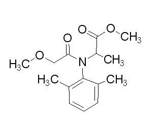 別名 甲霜靈 ;氨丙靈,甲霜安, N-(2-甲氧基乙酰基)-N-(2,6-二甲基苯基)-DL-alpha-氨基丙酸甲酯,立達霉,甲雙靈,瑞毒霉,阿普隆,D,L-N-(2,6-二甲基苯基)-N-(2'-甲氧基乙酰)丙氨酸甲酯 ;ridomil N-(2,6-Dimethylphenyl)-N-(methoxyacetyl)-DL-alanine methyl ester