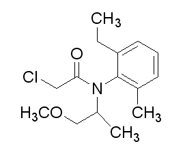 別名 異丙甲草胺 ;丙草胺,2-氯-N-(1-甲基-2-甲氧乙基)-N-(2-乙基-6-甲基苯基)乙酰胺 ;2-Chloro-N-(2-ethyl-6-methylphenyl)-N-(2-methoxy-1-methylethyl)acetamide